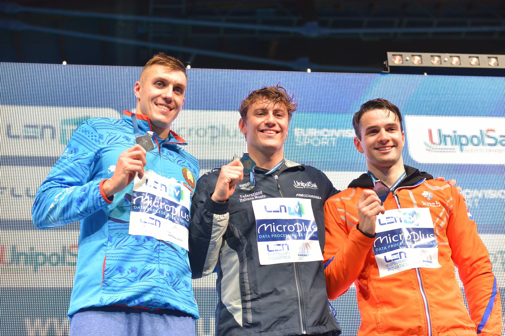Николо Мартиненги на финише заплыва на 100 метров брассом вырвал победу у рекордсмена мира Ильи Шимановича. Днем ранее итальянец стал чемпионом Европы в Казани в эстафете, а сегодня стал двукратным победителем турнира.